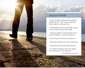 your body's overall function and immune system strengthen with well-being maintenance - move, hydrate, ease neck, refocus eyes, bedtime routine...