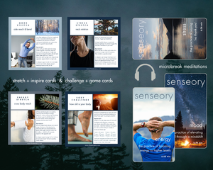 senseory box includes 'anywhere you are' cards to motivate & move you and meditations to calm your nervous system