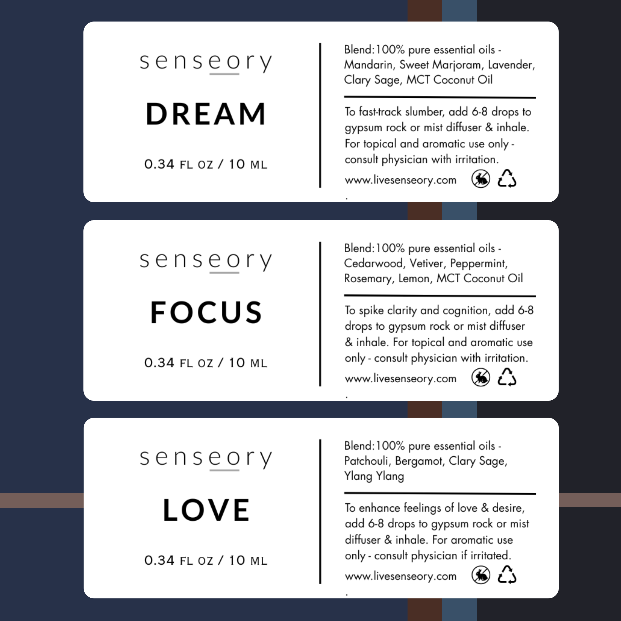 To Diffuse: Simply place 6-8 drops of desired blend in center of gypsum rock diffuser in a location of choice. Once blend fully evaporated, blends can be alternated without affecting individual scents.