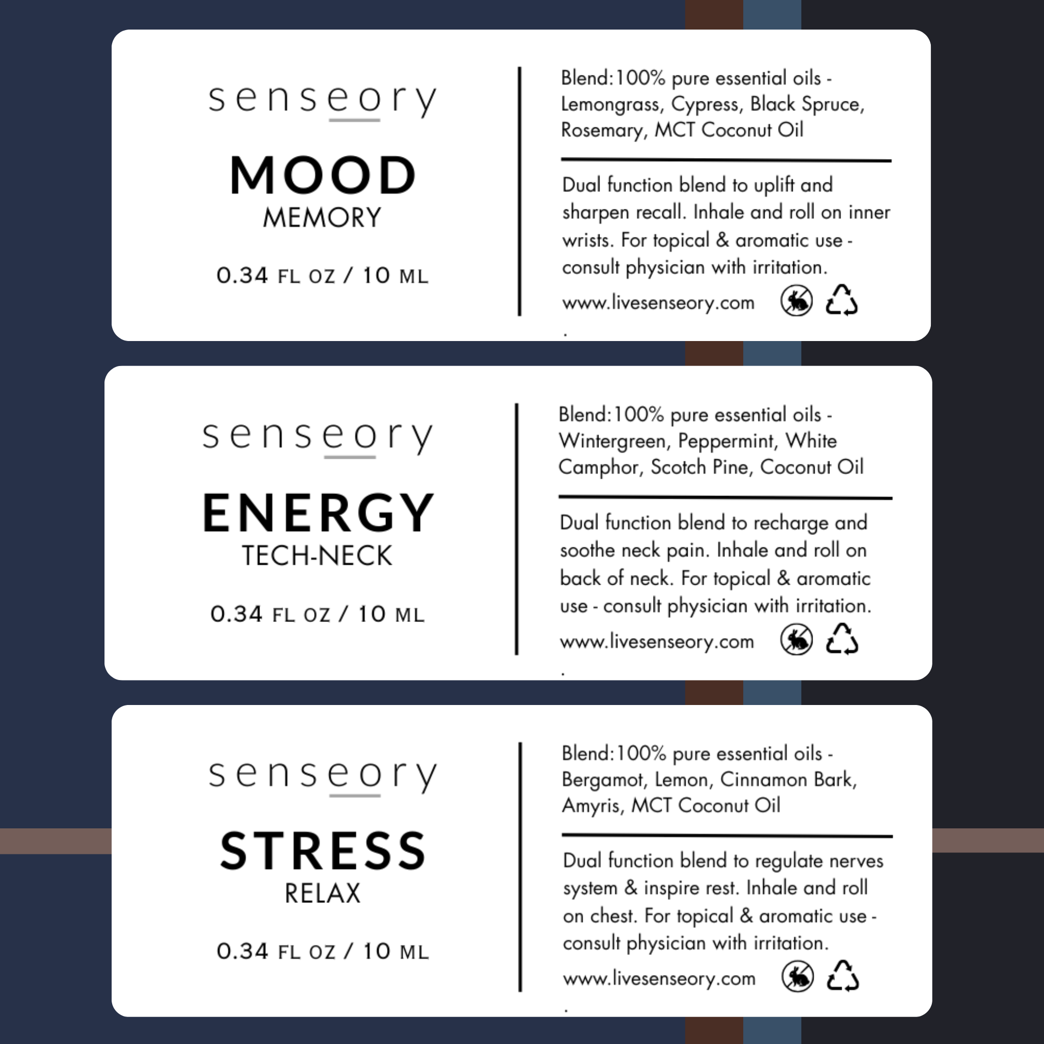I am a Mom always "on the go" but senseory's roll-ons give me the quick relief I need - like a guardian angel. I especially like Mood, and knowing the zipper case is made from recycled billboards is so cool!