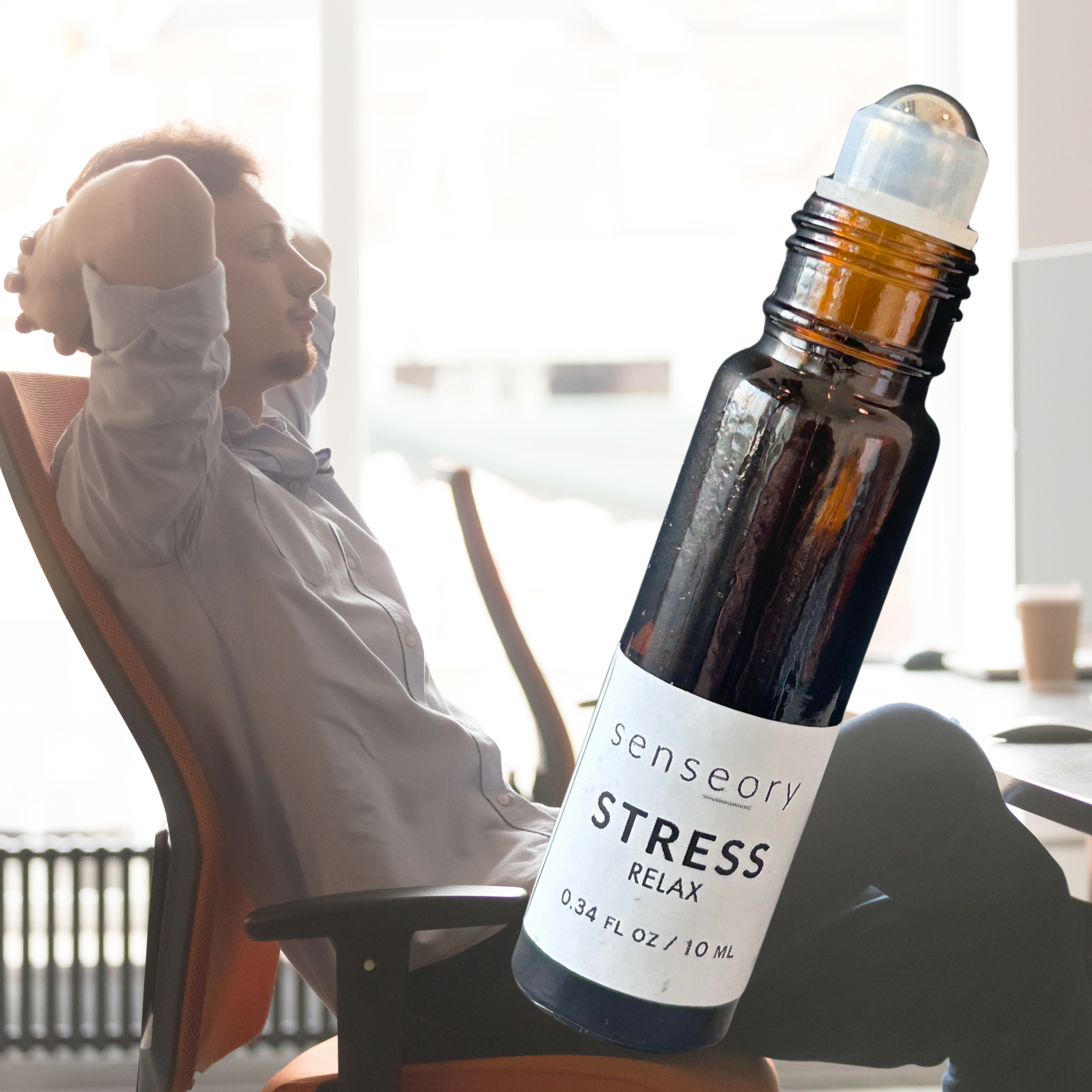 Calm your nervous system, reduce tension, and transition into deeper rest at night. Inhale and roll on sides of the neck from collarbone up towards jawline. Stress Relax 10-ml roll-on is a blend of 100% pure essential oils; lemongrass, rosemary, black spruce and cypress.