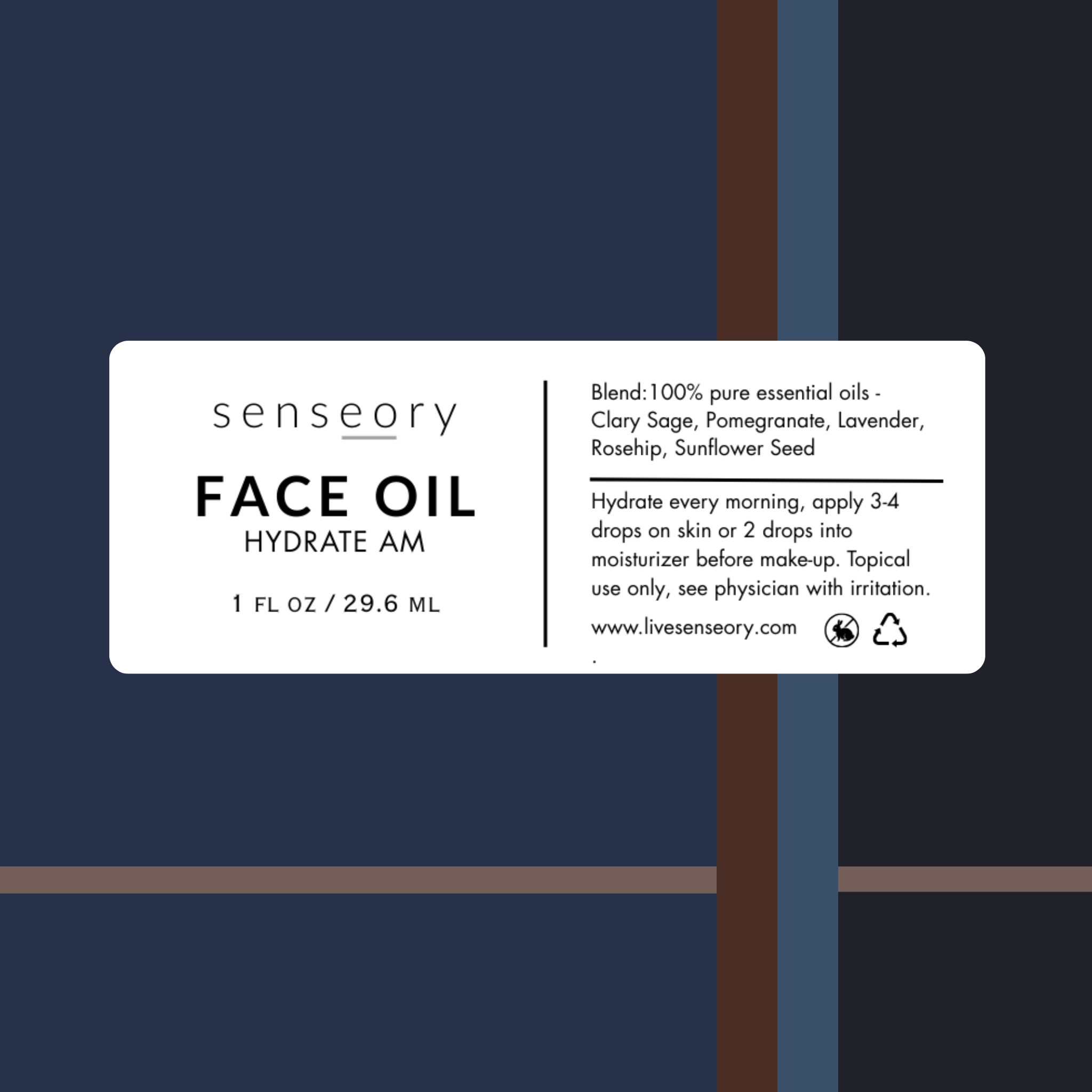 FACE OIL—HYDRATE AM Essential Oil Blend | 2 oz Glass Amber Eye Dropper Bottle