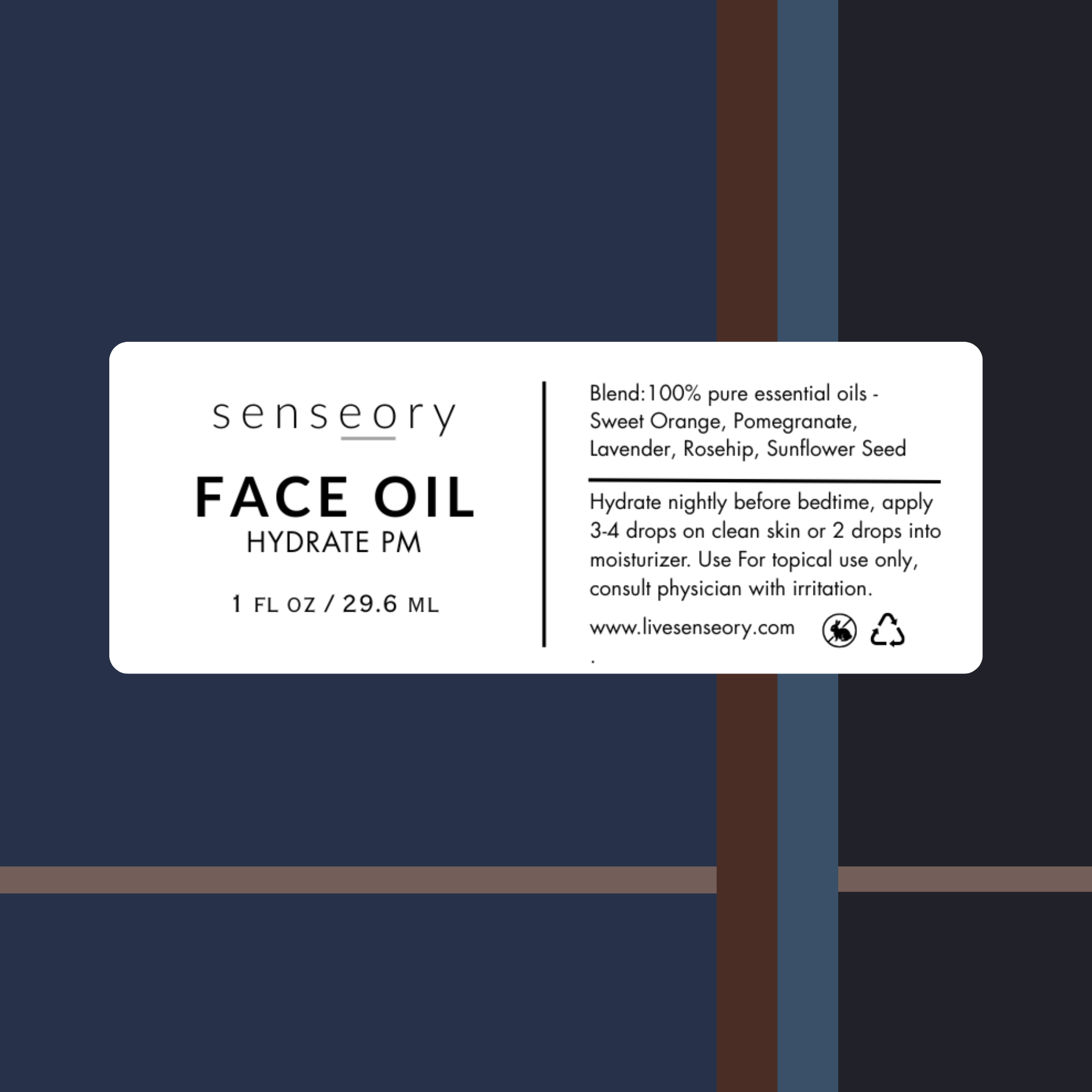FACE OIL–HYDRATE PM Essential Oil Blend | 1 oz Amber Glass Eye Dropper Bottle